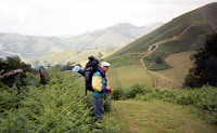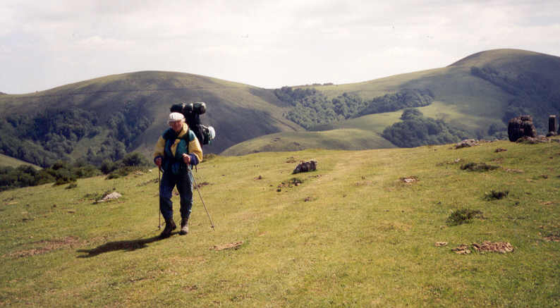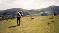 Sentier de crête du col Lepeder. Au fond le col de Berdaritz par où nous sommes arrivés la veille pour descendre aux Aldudes.