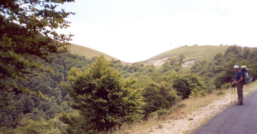 Nous n'y parvenons que vers 19 h. Pas de boutique car nous sommes loin de la frontière, pas d'habitation, une simple chapelle à la porte close dans un joli courant d'air, ce qui nous oblige à installer nos tentes plus bas vers Roncesvalles, sur un petit sentier envahi par les herbes.