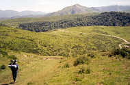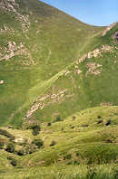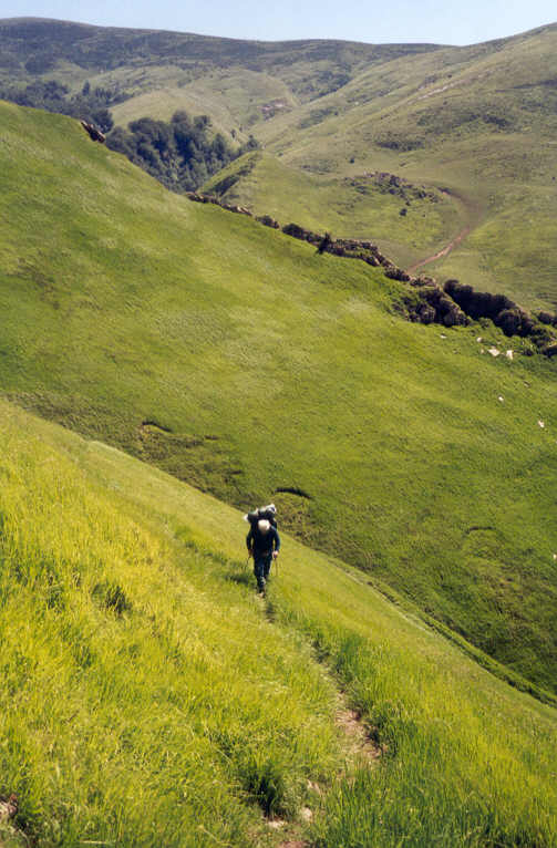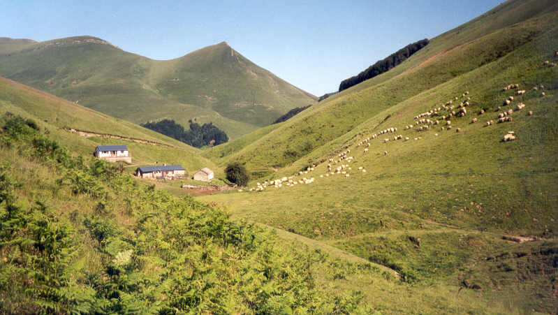Nous déjeunons à l'ombre d'un arbre en nous offrant le luxe d'un café chaud. C'est ensuite que nous quittons l'itinéraire normal qui descend au nord vers Béhérobie. La route pastorale qui descend du col d'Orgambidé mène près d'un vallon très encaissé.