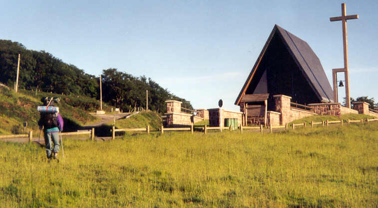 Ce matin, nous allons emprunter à contresens l'ancienne voie des pèlerins de Saint-Jacques-de-Compostelle, et ce, jusqu'à ce que nous ayons regagné la France (depuis hier soir, nous sommes en territoire espagnol car la frontière fait ici une forte avancée vers le nord).