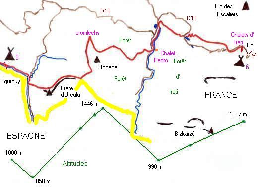 Nous faisons nos achats de nourriture à l'unique épicerie du centre, et laissons le téléphone portable de Yves au café bar attenant, afin qu'il soit rechargé. Puis nous partons à la recherche d'un emplacement pour la nuit. Celui que nous trouvons offre une vue intéressante sur la vallée de Larrau et sur le pic d'Anie.