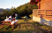 La nuit a été fraîche et humide ; Yves a souffert du froid. Les tentes sont pliées encore trempées, et les sacs sont préparés dans l'herbe humide.