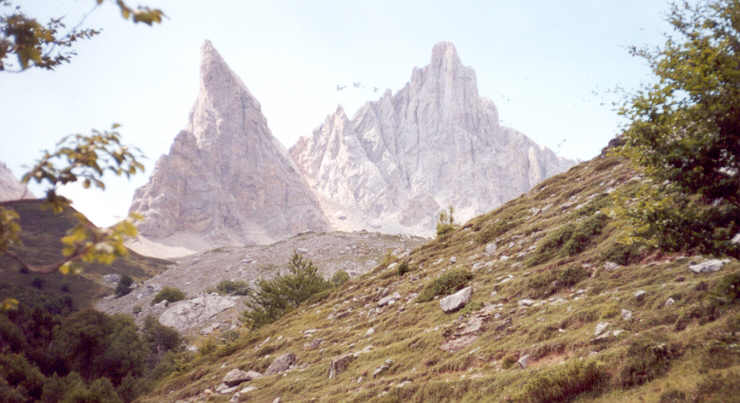Vue prise à la Table des Trois Rois : à gauche le Pic du même nom, à droite le Pic d'Anie.