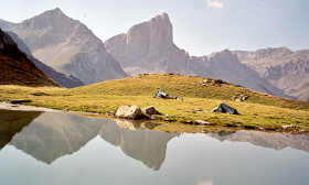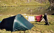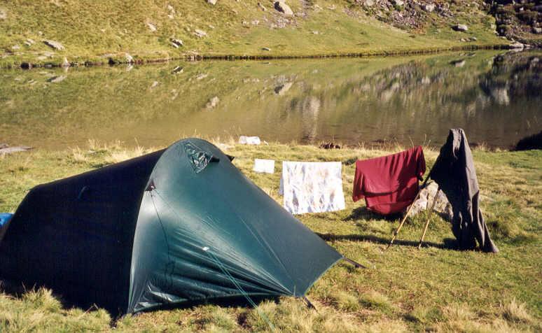 Le campement près du lac d'Ansabère nous laissera un souvenir très plaisant. Merveilleuse fin d'après-midi vécue sur ses rives. Un mince filet d'eau sortant de terre nous procure l'eau potable à volonté. Nous avons en abondance l'eau et soleil ; la toilette est un plaisir et faire la lessive à la main n'est même pas une corvée !
