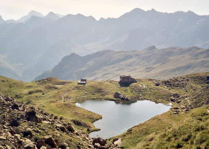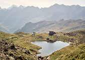 Le lac et le refuge de Pombie. Dans la brume, à gauche, le Val d'Arrius.