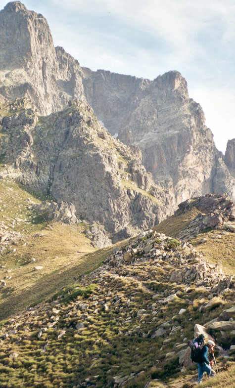 Ensuite le sentier s'élève, en zigzaguant entre les hêtres, pour sortir de la forêt juste avant la traversée du ruisseau d'Arrius. Plus haut, nous croisons un homme qui revient du refuge d'Arrémoulit et qui s'arrête pour bavarder. Il a 70 ans, mais est encore très sportif. Ses activités semblent nombreuses. Il connaît la région et s'est construit une cabane en montagne avec des amis. Il nous apprend également que c'est l'Europe qui finance la rénovation des bergeries.