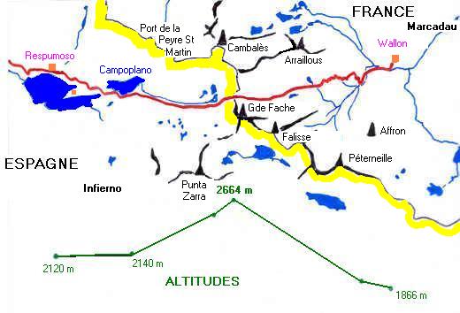 Petite étape, avec cependant un nouveau record d'altitude au Col de la Fache (2664m). Rencontre des premiers névés. À partir du col et jusqu'à Gavarnie, nous sommes en pays connu.
