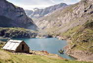 11 h. Casse-croûte frileux, donc rapide. Après avoir contourné le massif du Pimené, on parvient aux granges joliment restaurées qui dominent le Lac des Gloriettes.