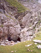 | La première partie du trajet s'effectue dans un vallon aux nombreux phénomènes karstiques. Gouffres et dolines témoignent de la présence d'eaux souterraines. Philippe, le spéléologue, est toujours en émoi quand il fréquente de tels lieux.