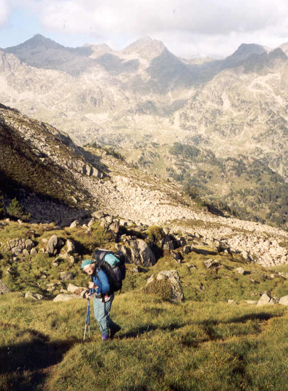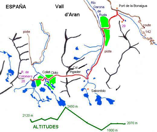 Il suffit à présent de suivre une piste en mauvais état pour descendre la vallée de la Garonne de Ruda. Subitement, des nuages arrivent du bas, et la pluie se met à tomber, dense et tenace, puisqu'elle va durer jusqu'au Port de la Bonaigua.