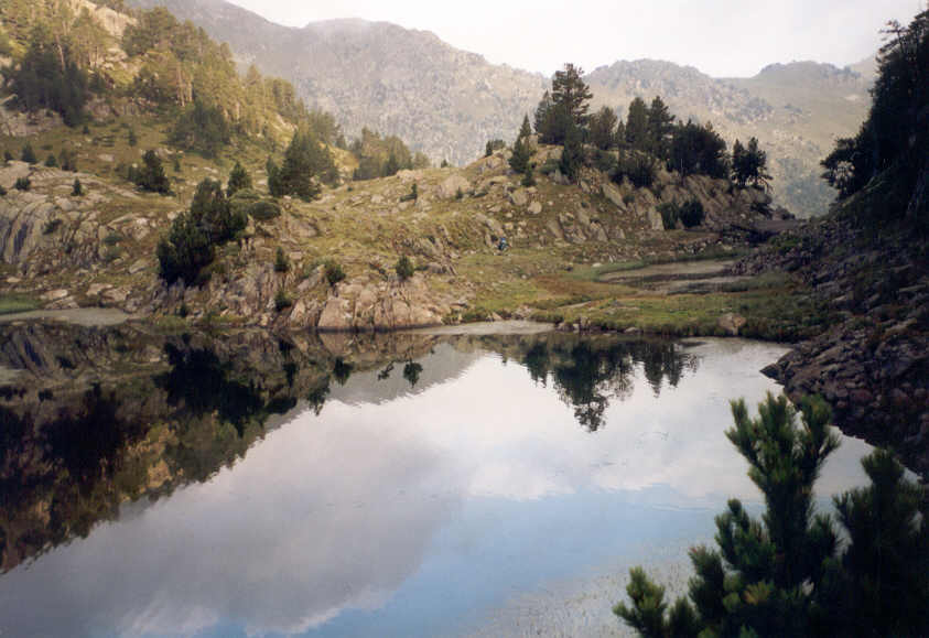 Malgré l'humidité de l'air, n'est-il pas charmant ce petit lac, avec son île rocheuse ? Le soleil qui se devine indique la direction du col qu'il va falloir gravir.