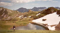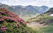 Dès la première heure, ils sont dans l'ambiance de la montagne au début de l'été. Les massifs de rhododendrons parsèment des tâches rosées sur les pentes verdoyantes, tandis que les névés encore nombreux sont les vestiges des rigueurs hivernales.