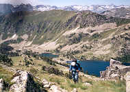 À partir du col débute une longue descente de 1200 mètres vers le hameau de Alós de Isil. Il y a maintenant des cairns pour se repérer, et cependant Yves et Philippe trouvent le moyen de prendre chacun une voie différente. |