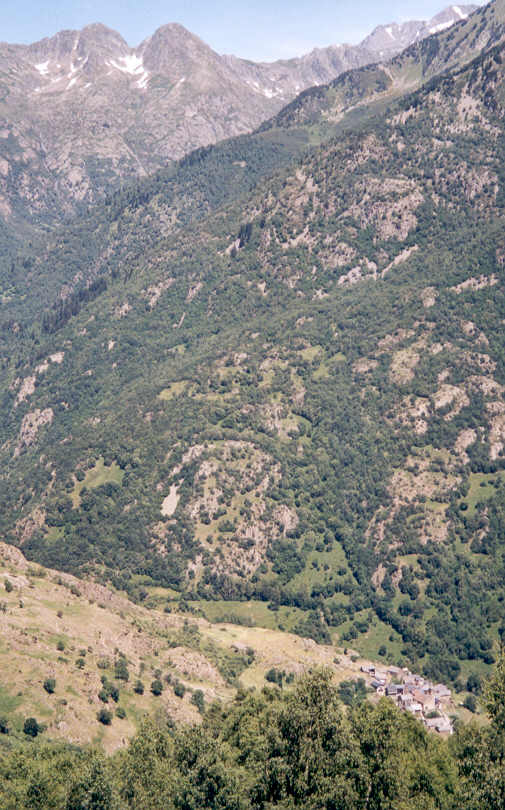 Le village de Alós de Isil. L'itinéraire se poursuivra par les 2 vallées de gauche.