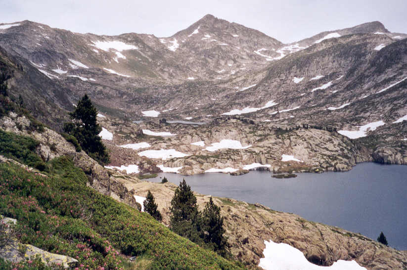 | Ensuite, c'est l'Estany Romedo de Baix, très grand lui aussi, avec un îlot boisé qui rajoute à son attrait. |
