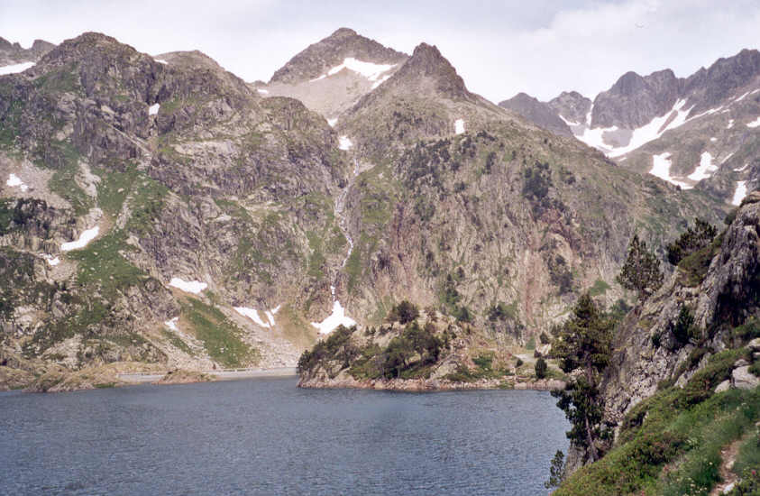 | La suite consiste à passer de l'autre côté du barrage, suivre la rive opposée jusqu'au torrent qui alimente le lac par le nord. Il faut alors remonter ce ruisseau et franchir un défilé. On débouche dans un vallon et un petit laquet (2025m) "non figuré sur les cartes". C'est l'emplacement de bivouac indiqué par le gardien du refuge. |