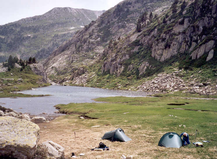 C'est d'abord l'Estany Romedo de Dalt. De l'autre côté, minuscule dans l'immensité des lieux, est dressée une tente jaune, des pêcheurs sans doute.