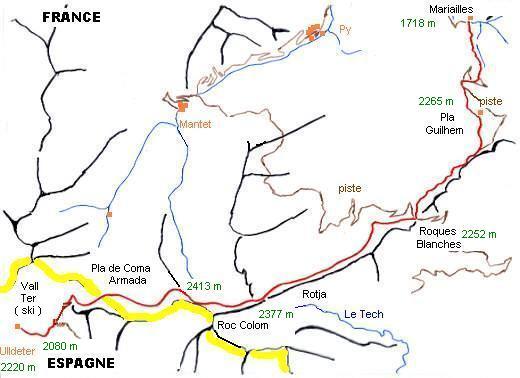 Etape d'altitude sans grand dénivelé. Traversée de hauts plateaux. On quitte la frontière et l'on accepte un grand détour, afin de s'approcher du Pic Canigou, montagne mythique que depuis longtemps chacun rêvait de gravir.