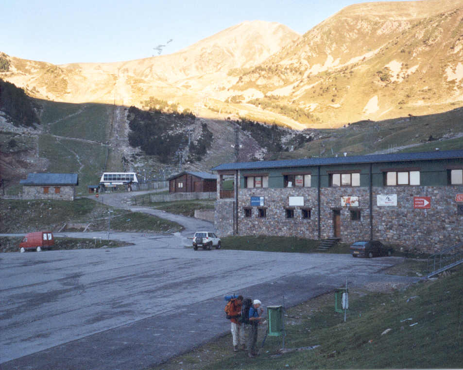 | Descente jusqu'à la route 140 mètres plus bas, route que l'on remonte jusqu'au parking terminal de la station de ski de Vall Ter. Ici, l'on trouve des poubelles où déposer ses déchets.