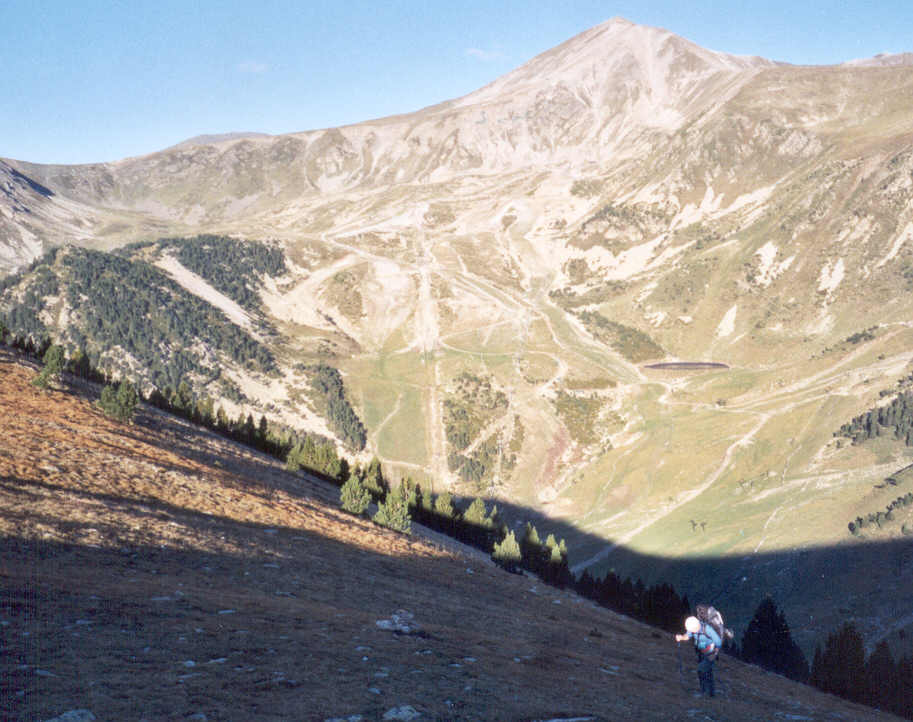 En face, pic Bastiments ou Pic des Géants. À gauche, Col de la Marrana, franchi la veille.