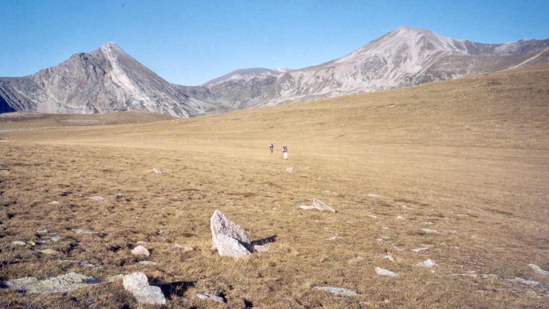 | La suite du parcours est des plus surprenantes. Le Pla de Coma Armada est un plateau herbeux à 2400 mètres d'altitude. Pas de relief, très peu de rochers. De loin en loin, des pierres levées indiquent la direction à suivre. Attention, danger en cas de brouillard !