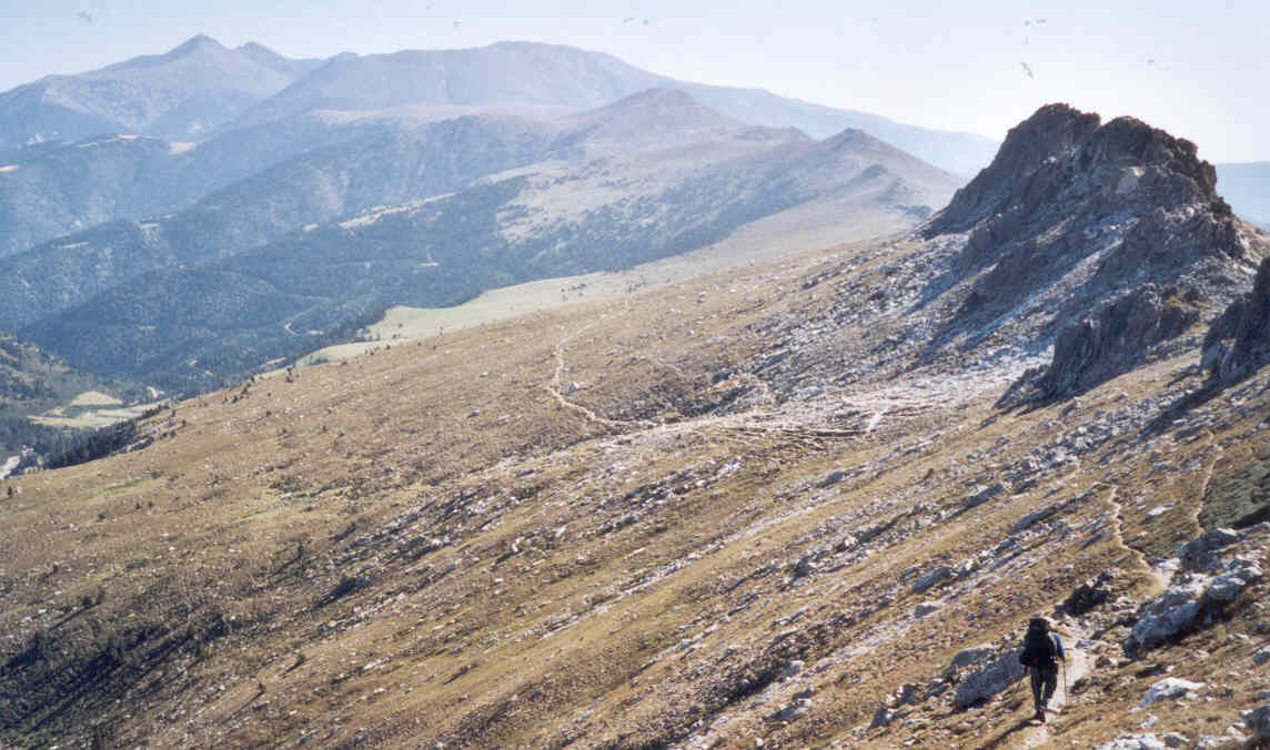 | Traversé le Pla de Coma Armada, passés les deux cols sous Roc Colom, il reste à suivre pendant 5 km environ une enfilade de crêtes, les "Esquerdes de Rotja".