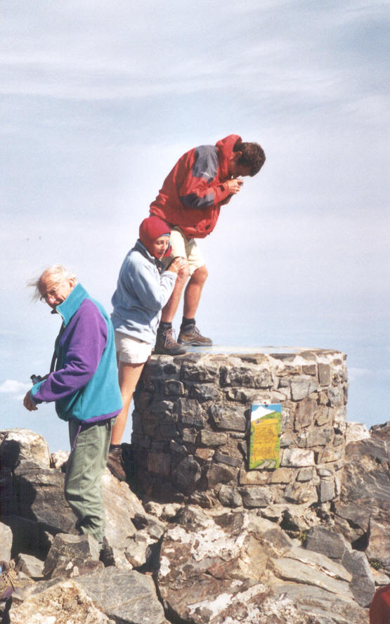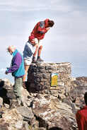 | Au fur et à mesure de la progression en altitude, la force du vent s'amplifie. Beaucoup de randonneurs redescendent sans s'être attardés au sommet, car le vent violent les en a dissuadés.