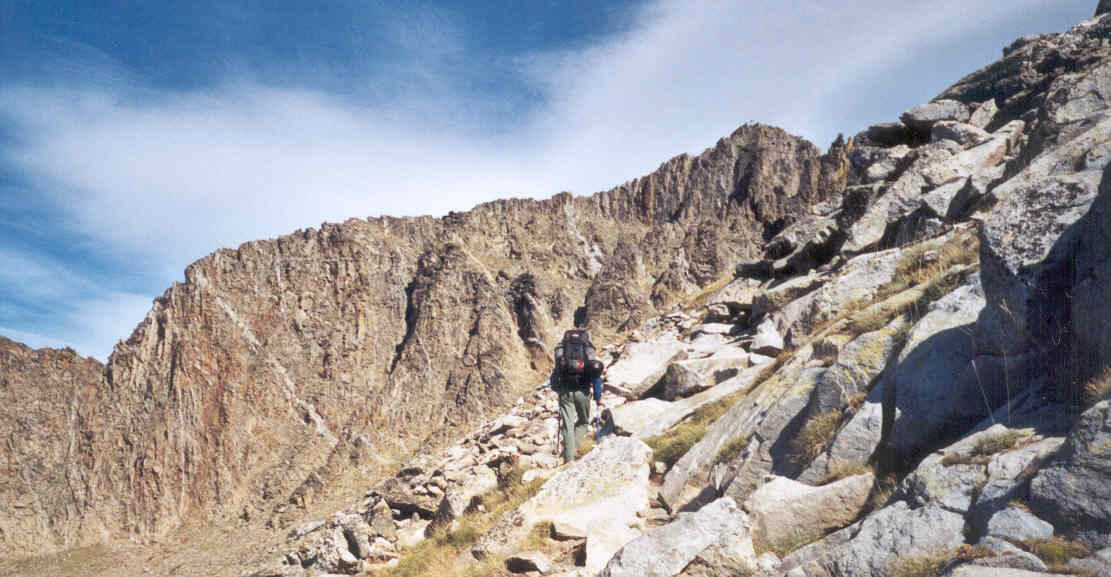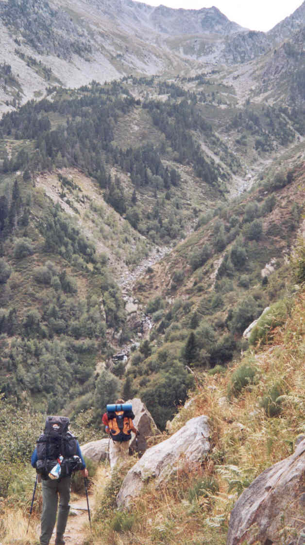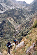 Quatre cents mètres sous le sommet, la HRP rejoint le GR10. C'est là que se fait la rencontre avec un groupe de jeunes bien sympathiques déjà rencontrés les 2 premiers jours autour du refuge des Bésines.
