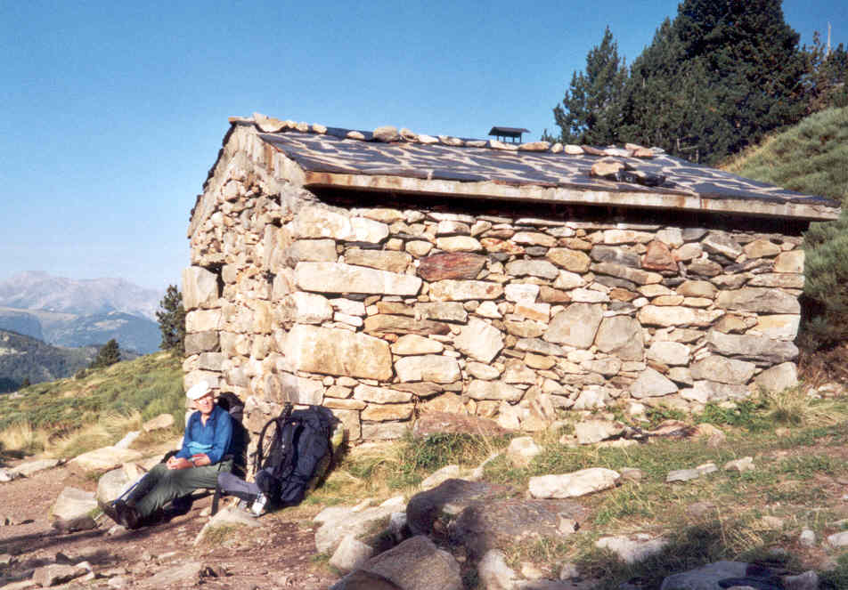 | Au sortir de la forêt, sous les premiers rayons de soleil, il est bien agréable de faire une pause sur le seuil du refuge Arago (2123 m), et de regarder monter les autres. Cela rappelle un voyage en Crète où, du matin jusqu'au soir, on voyait les vieillards assis sur le pas de la porte, regardant les passants…