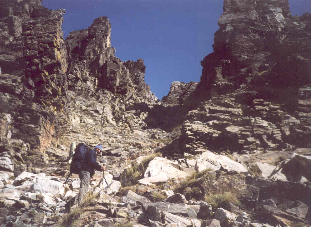 Le sentier reste des plus faciles jusqu'au pied de la grande cheminée qui précède le sommet. Celle-ci est un grand escalier naturel, haut d'une soixantaine de mètres, qui pourrait s'escalader sans l'aide des mains s'il n'y avait pas autant de vent. Bien qu'il soit facile, le final de cette voie donne à l'ascension un caractère appréciable de haute montagne.