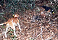 | Quelques minutes plus tard, ils tombent en arrêt devant un sanglier agonisant, surveillé de près par deux chiens. Plus haut, les deux marcheurs indiquent l'emplacement du gibier à un chasseur. Fin de l'épisode quand ils entendent la détonation sèche du coup de grâce.