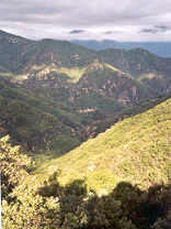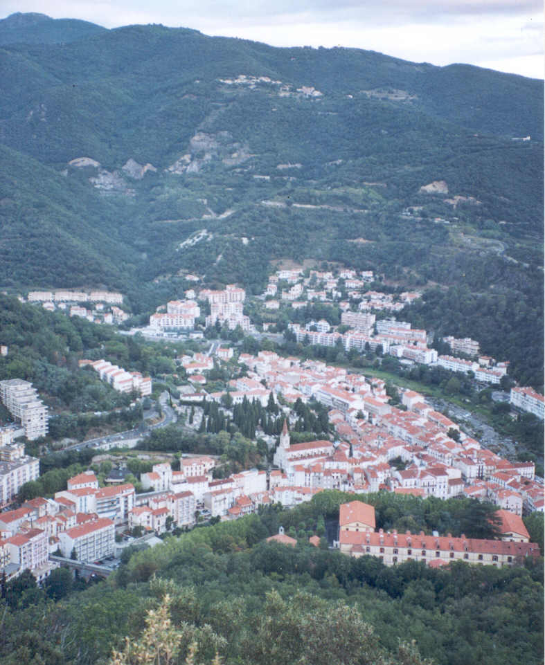 En fin de nuit, il a plu. D'un pas régulier et soutenu, les deux amis grimpent sans grand effort, des heures durant. Une échancrure dans le couvert végétal leur permet d'observer l'ensemble de la ville d'Amélie-les-Bains.