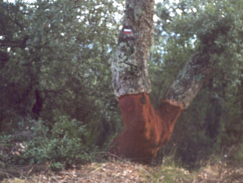 | La végétation devient méditerranéenne : chênes-verts, mais aussi chênes-lièges, dont les troncs écorchés font apparaître d'impressionnantes cicatrices rougeâtres.