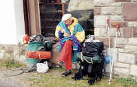 Comme le pain manque toujours, Yves échange du chocolat contre du pain avec un jeune et sympathique randonneur espagnol. Bien moins chargé que nous et "armé" d'un piolet, il suit le GR 11, l'équivalent espagnol du GR10.