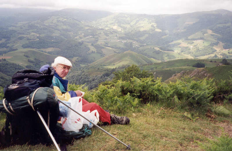 | Déjeuner au col de Mizpira, face à la vallée des Aldudes.