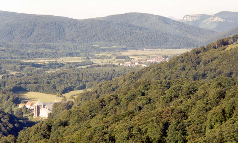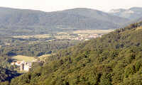 On aperçoit en contrebas l'hospice de Roncevaux et le village de Burguette. |