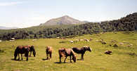 | Ici comme ailleurs en montagne, les chevaux en liberté ne sont pas là pour le décor ; ils ont la tâche de nettoyer les herbages, car ils mangent les plantes les plus coriaces.
