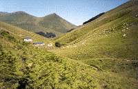 En descendant la face Est du col d'Errozaté vers les bergeries d'Uhartegain, la longue crête d'Urculu qui se profile devant nous, laisse penser à la rude journée du lendemain.