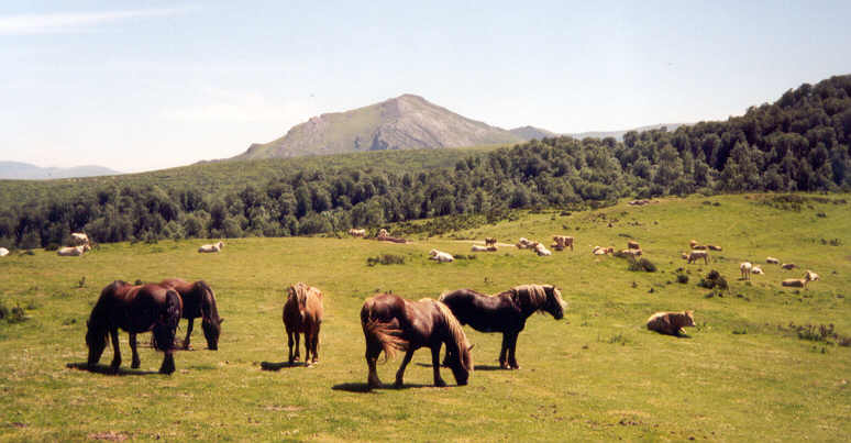 Plus tard nous descendons vers un vaste plateau de pâturages et de forêts : c'est le col d'Orgambidé (988 m ).