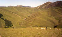 | Le col d'Errozaté et son vallon où nous avons dormi. Au loin le col d'Orgambidé. |
