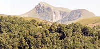 Nous nous dirigeons vers le complexe touristique des Chalets d'Irati. Situé en pleine forêt, il est dominé par le pic d'Orhy, en arrière plan.
