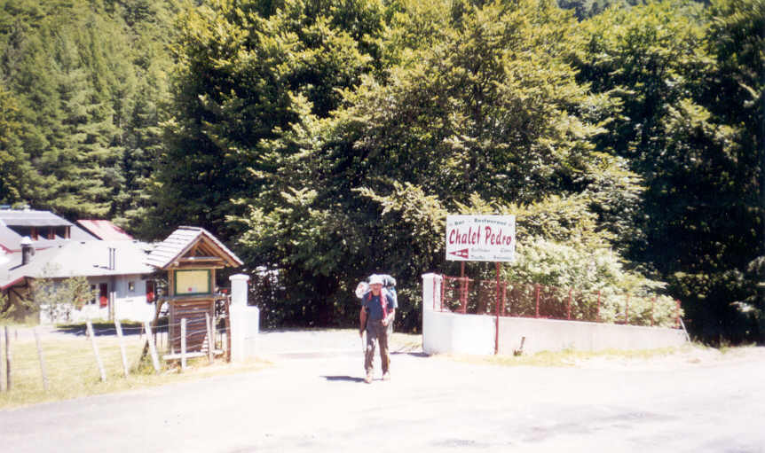 Jusqu'à la route en fond de vallée, nous avons 500m à descendre dans une hêtraie. Dans un site remarquable, le long du torrent et à l'abri des arbres, se trouve l'auberge dénommée "Chalet Pedro".