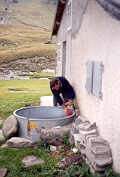 | Alors que nous nous désaltérons d'un thé bien chaud, nous voyons les randonneurs qui descendent du col, couverts de leur cape. Nous nous félicitons de ne pas avoir eu à monter nos tentes sous la pluie.