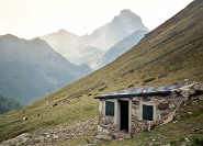 Au retour, nous jetons un coup d'œil dans la cabane de berger. Une pièce est accessible, les autres parties de la bergerie sont fermées. Nous décidons de passer la nuit ici car le temps est trop incertain. D'ailleurs, à peine nos sacs mis à l'abri, une première averse se déclenche, accompagnée d'orage.