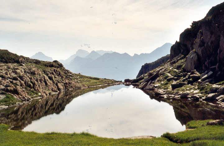 Le lac et le refuge de Pombie. Dans la brume, à gauche, le Val d'Arrius.