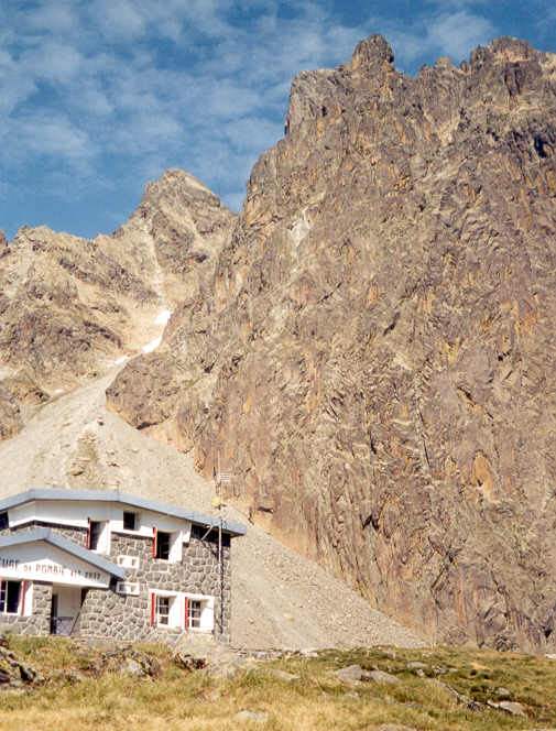 Le refuge de Pombie (2032 m ), la Grande Raillère Þ et la face Sud-Est de l'Ossau.