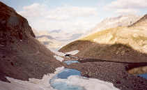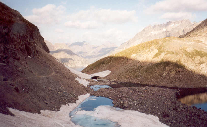 Les névés qui descendent jusqu'au lac sont les premiers que nous traversions. Le Col de la Fache (2664 m) est situé un peu au-dessus et nous y parvenons après trois heures de marche.