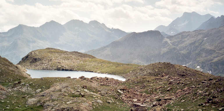 ÜEn arrivant au col de la Fache, vue sur les lacs espagnols.