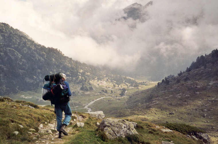 La descente vers la vallée française du Marcadau n'est plus qu'une formalité. Mais le temps se gâte et bientôt une brume froide et humide nous enveloppe.