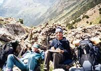 Altitude 2000 m. Les deux hommes cherchent un abri qui soit : à proximité de l'eau, caché des regards de la vallée (car le camping est interdit dans la zone), et protégé du vent qui souffle avec violence. En voulant mettre ses habits à sécher, Yves s'aperçoit que certains d'entre eux sont restés sur la corde à linge du refuge d'Estos. Décidément, ce n'est pas son jour ! |